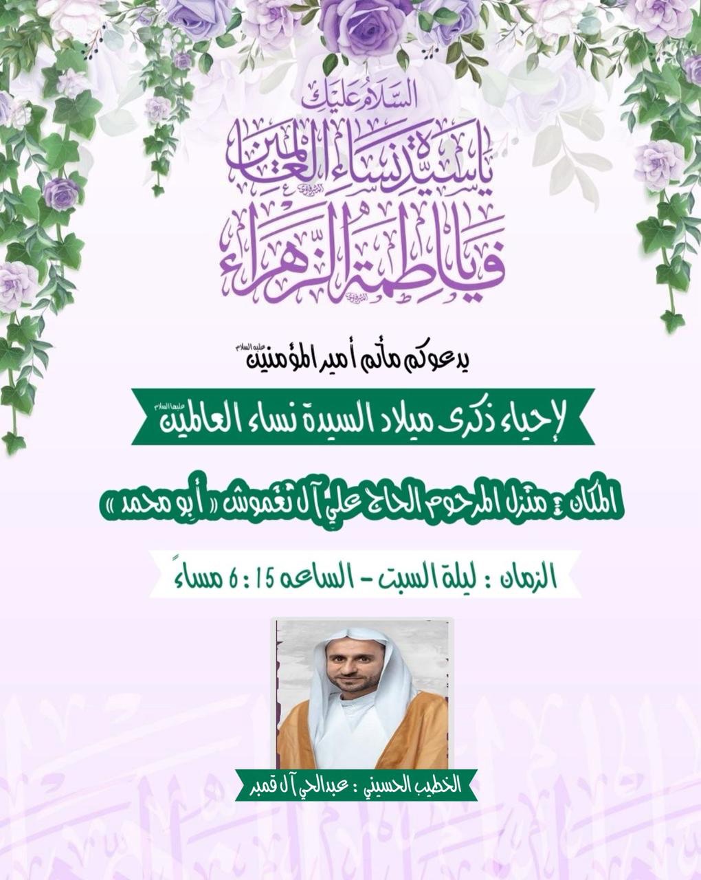 إحياء ذكرى ميلاد السيدة الزهراء (ع) بمأتم أمير المؤمنين عليه السلام