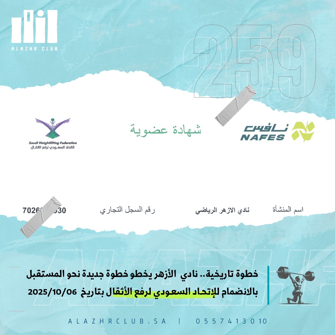 📋| في خطوةٍ تاريخيّة.. نادي الأزهر ينضم رسميًا إلى الاتحاد السعودي لرفع الأثقال 🏋️♂️