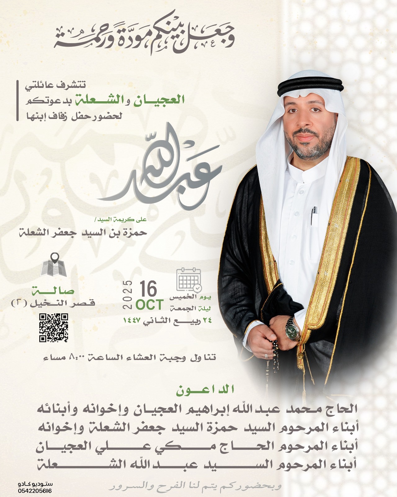 حضوركم يُشرفنا ويزيد أفراحنا بهجة وسرورًا