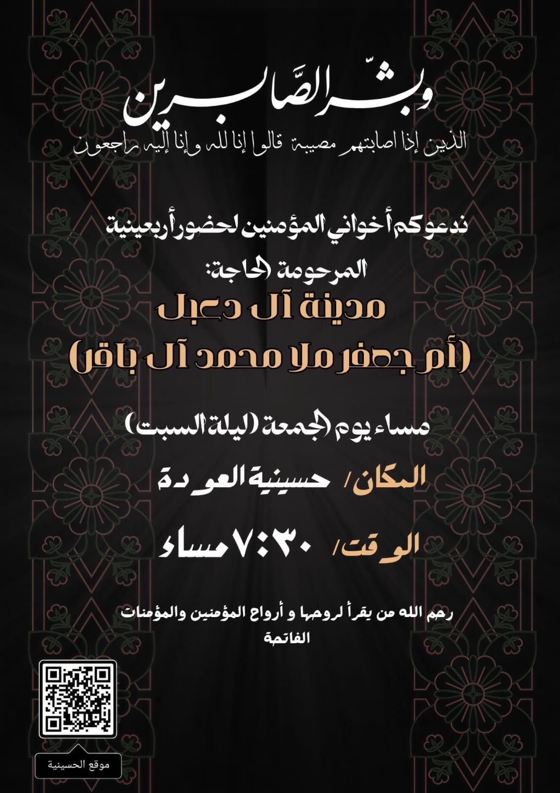 أربعينية المرحومة أم جعفر بن ملا محمد آل باقر