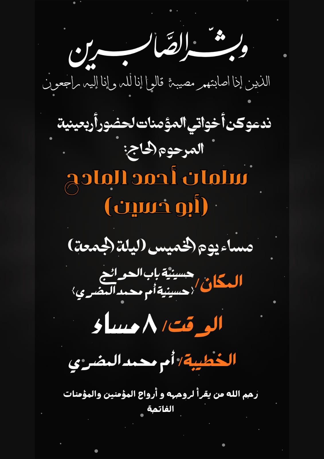 ندعوكن أخواتي المؤمنات لأربعينية المرحوم الحاج/