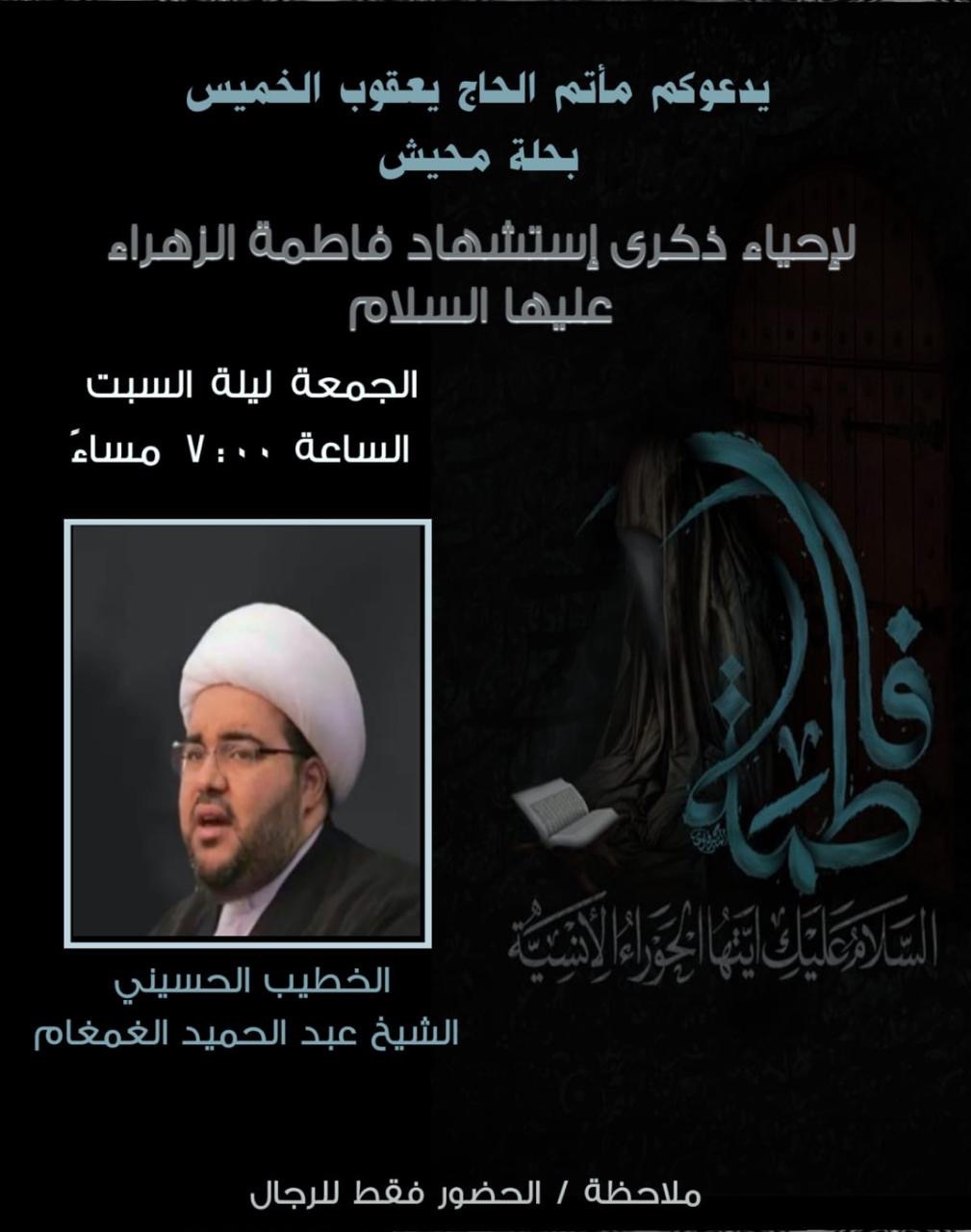 يعتذر مجلس الأمام الحسين منزل عيسى المهدود لتأجيل قراءة مولد سيدة نساء العالمين الى وقتاً لاحق