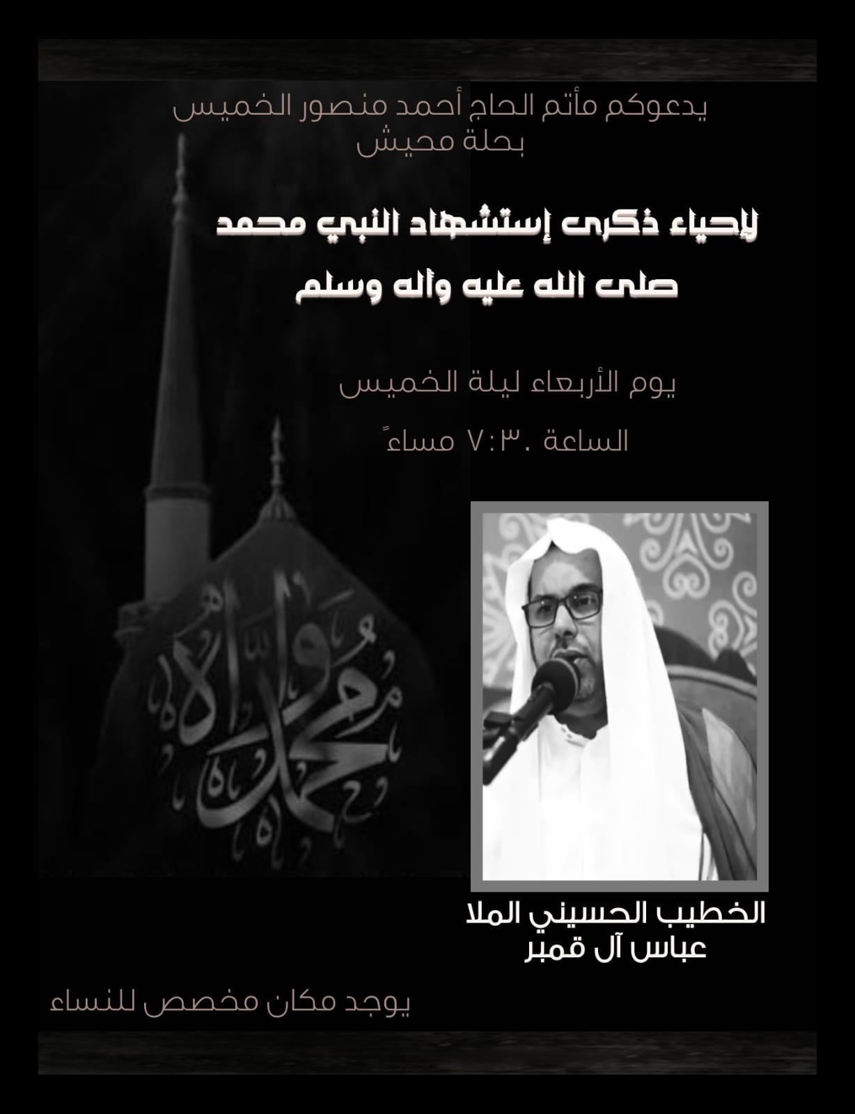 يدعوكم مأتم الحاج أحمد منصور الخميس بحلة محيش