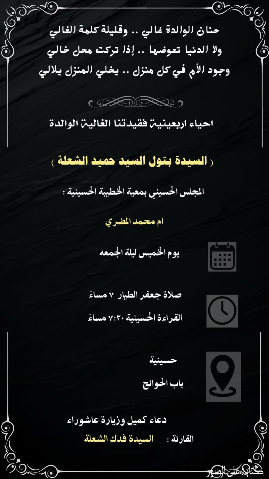 الرئيسية/راحلون/للنساء : أربعينية السيدة بتول سيد حميد الشعله راحلون للنساء : أربعينية السيدة بتول سيد حميد الشعله منذ ساعتين0 50 منذ ساعتين0 50