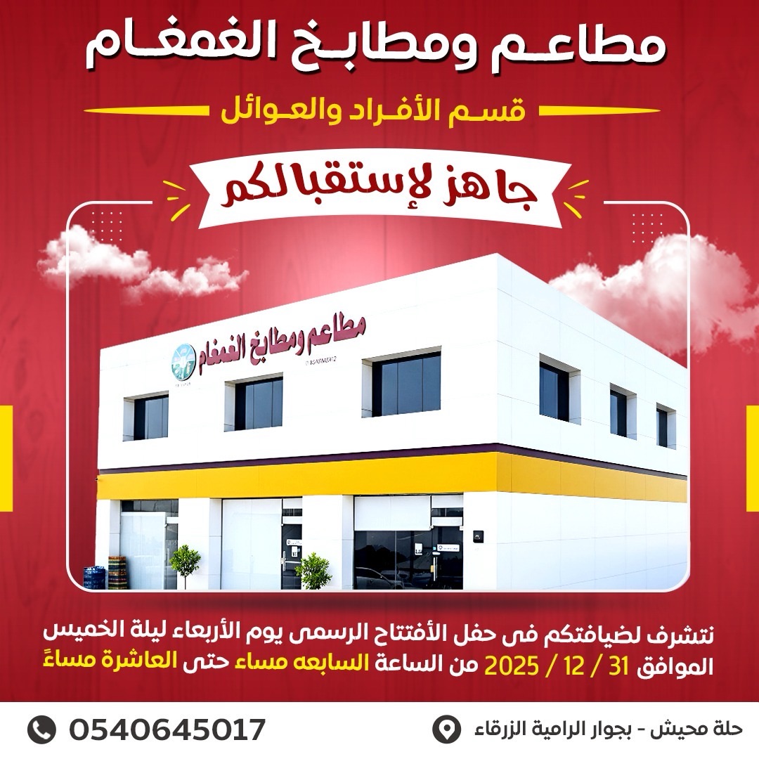 مطاعم ومطابخ الغمغام تفتح أبوابها لاستقبالكم 🍽️