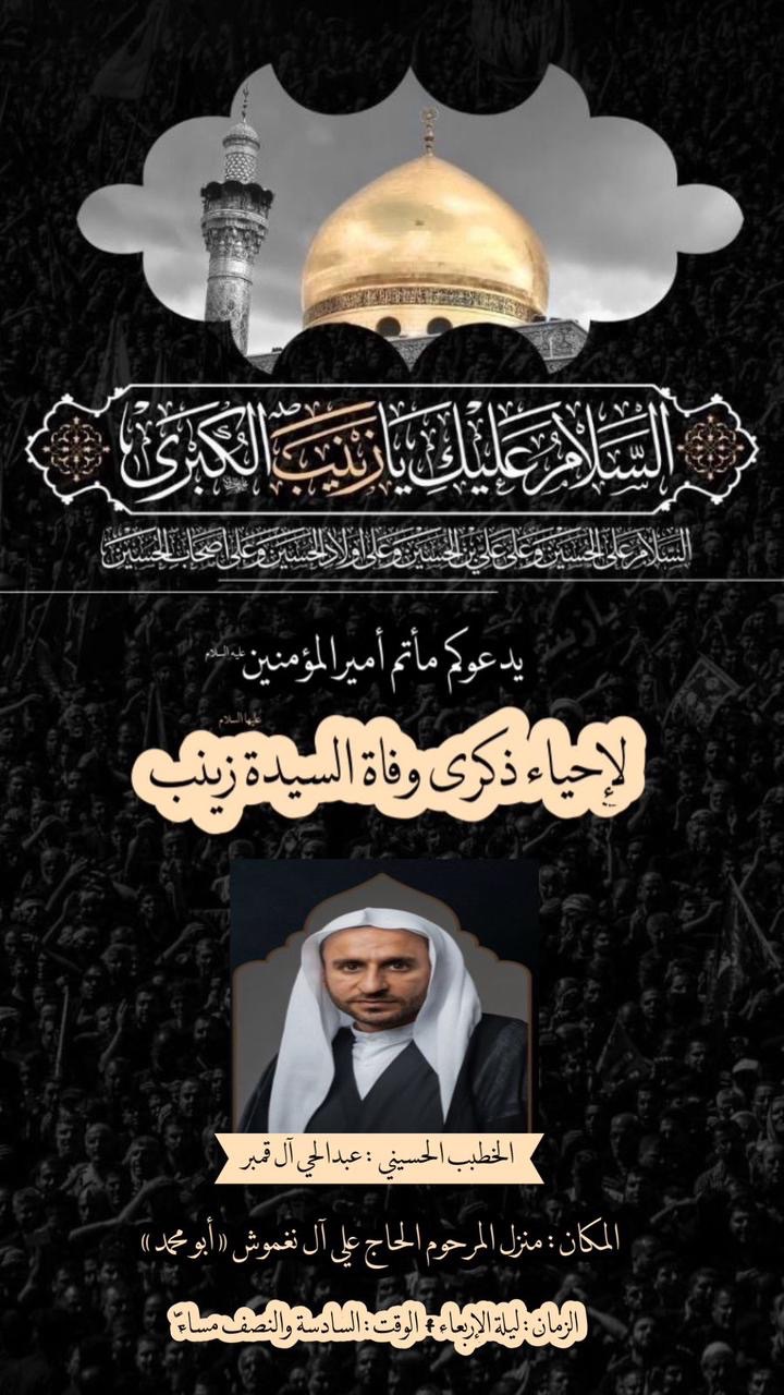 إحياء ذكرى وفاة السيدة زينب (ع) بمأتم أمير المؤمنين عليه السلام