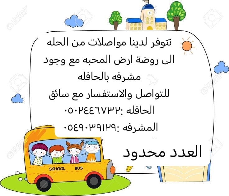 تتوفر لدينا مواصلات من الحلة إلى روضة أرض المحبة مع وجود مشرفة بالحافلة