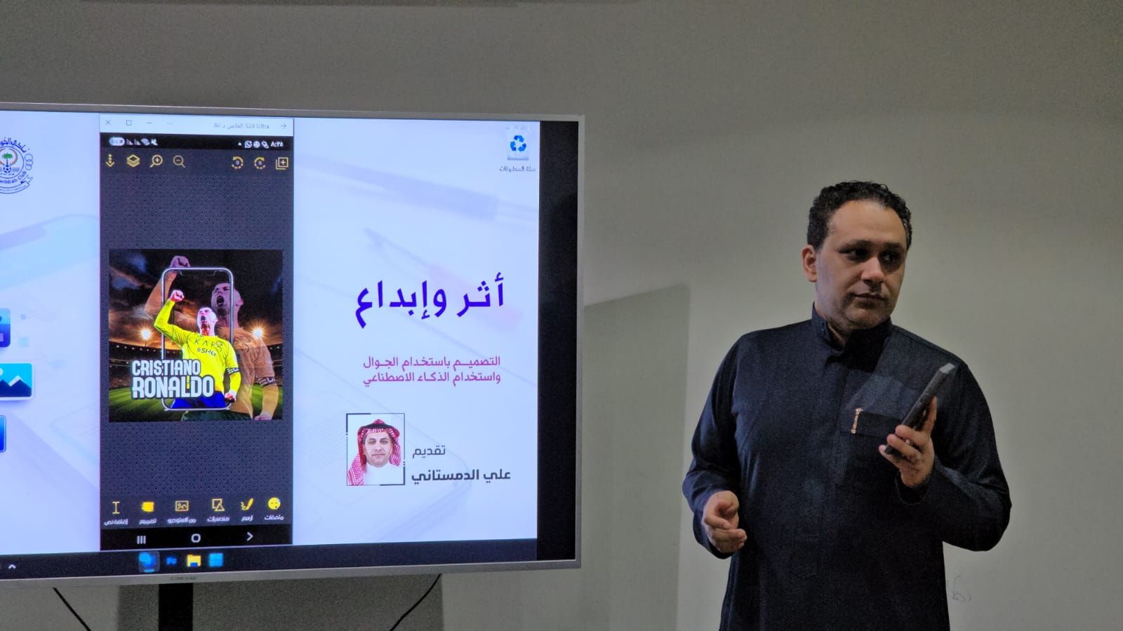 وتضمنت المبادرة في يومها الأول ورشة تدريبية قدّمها د.علي الدمستاني، تناول خلالها نبذة تعريفية عن برامج التصميم بالجوال، وخطوات تنفيذ التصميم من الفكرة حتى الإخراج النهائي، إضافة إلى توضيح أهمية التصميم عبر الجوال وإمكانية تحويله إلى فرصة عمل عن بُعد أو وظيفة ثانوية داعمة للدخل الأساسي.
