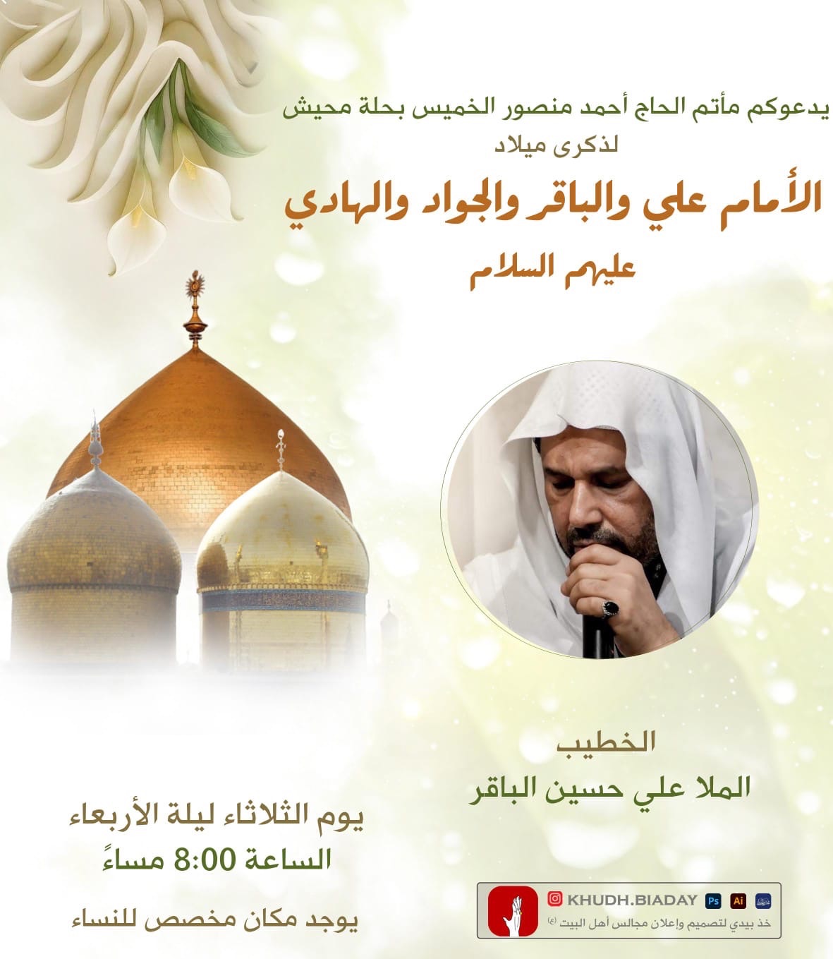 لإحياء ذكرى مواليد رجب الأمام علي والباقر والجواد والهادي عليهم السلام