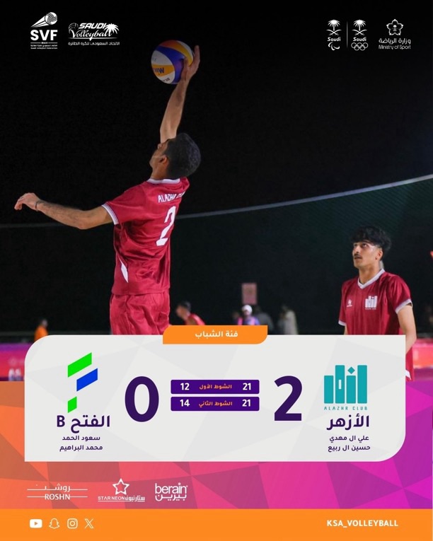 فرض نادي الأزهر الرياضي – فئة الشباب نفسه بقوة في أولى مشاركاته ببطولة المملكة للكرة الطائرة الشاطئية تحت 19 سنة للموسم الرياضي 2025–2026، بعدما أنهى الجولتين الأولى والثانية متصدرًا ترتيب مجموعته عن جدارة.