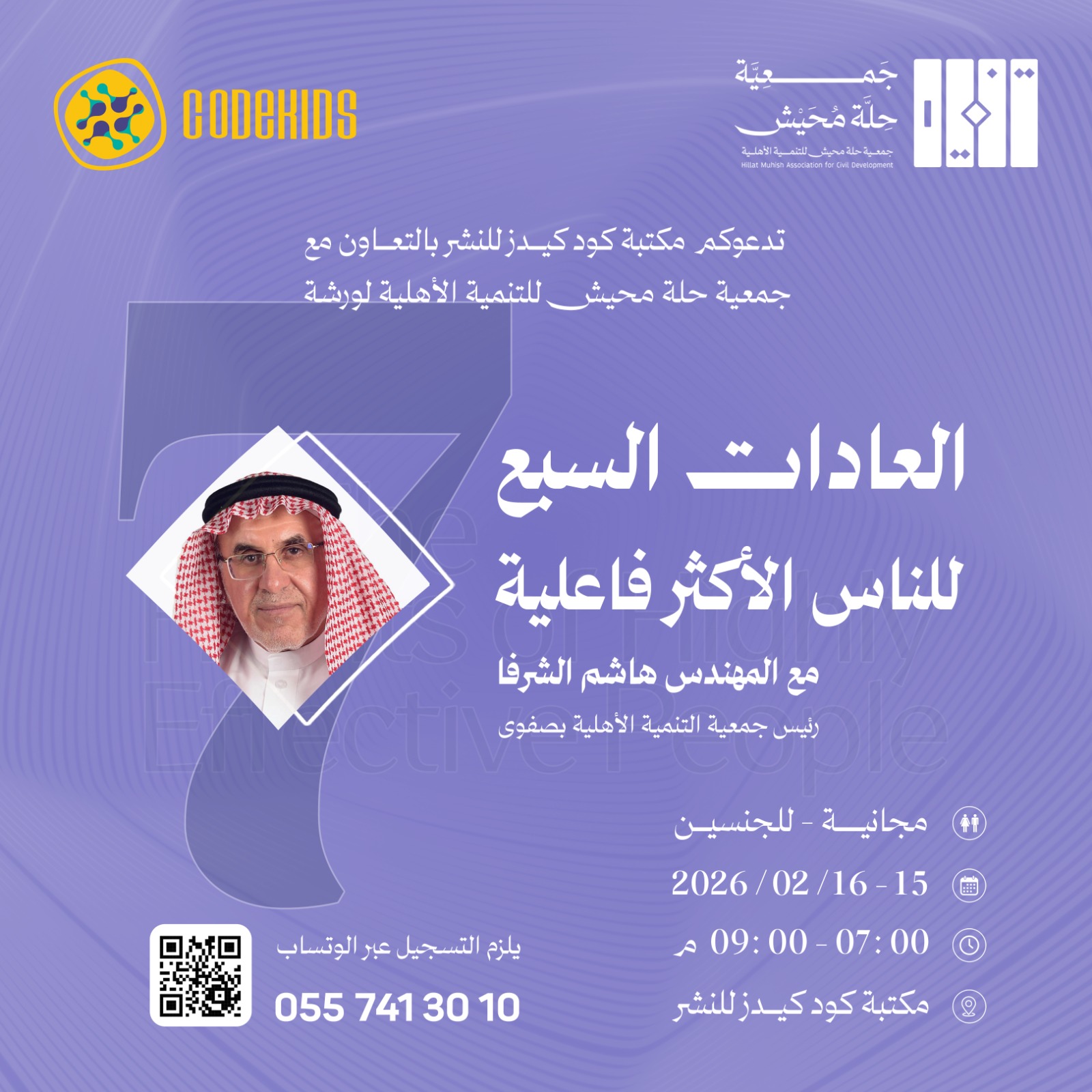 وتُقام الورشة على مدى يومين الأحد والاثنين 15–16 فبراير 2026م، من الساعة 7:00 حتى 9:00 مساءً، في مقر مكتبة كود كيدز للنشر، ويقدمها رئيس جمعية التنمية الأهلية بصفوى.
