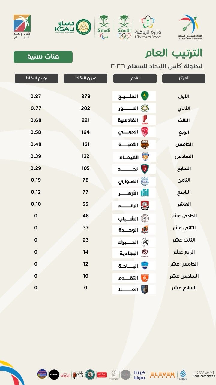 🏹 | في ثاني المشاركات … الأزهر يحل تاسعاً في الترتيب العام للأندية في بطولة كأس الاتحاد للسهام في الفئات السنية ( سيدات)