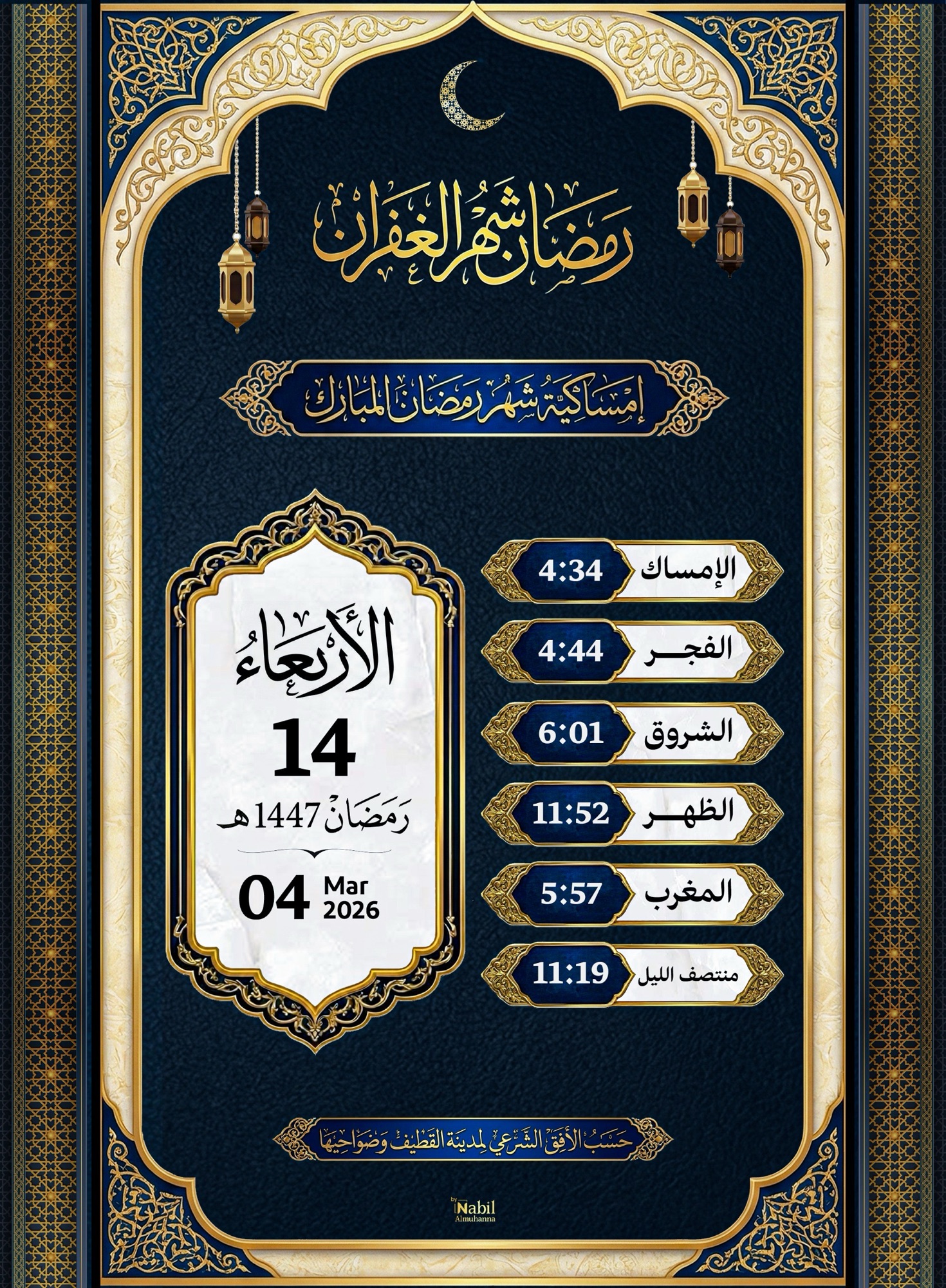 الرئيسية/دينية/إمساكية ودعاء اليوم (١٤) دينية إمساكية ودعاء اليوم (١٤) منذ ساعة واحدة 8 منذ ساعة واحدة 8