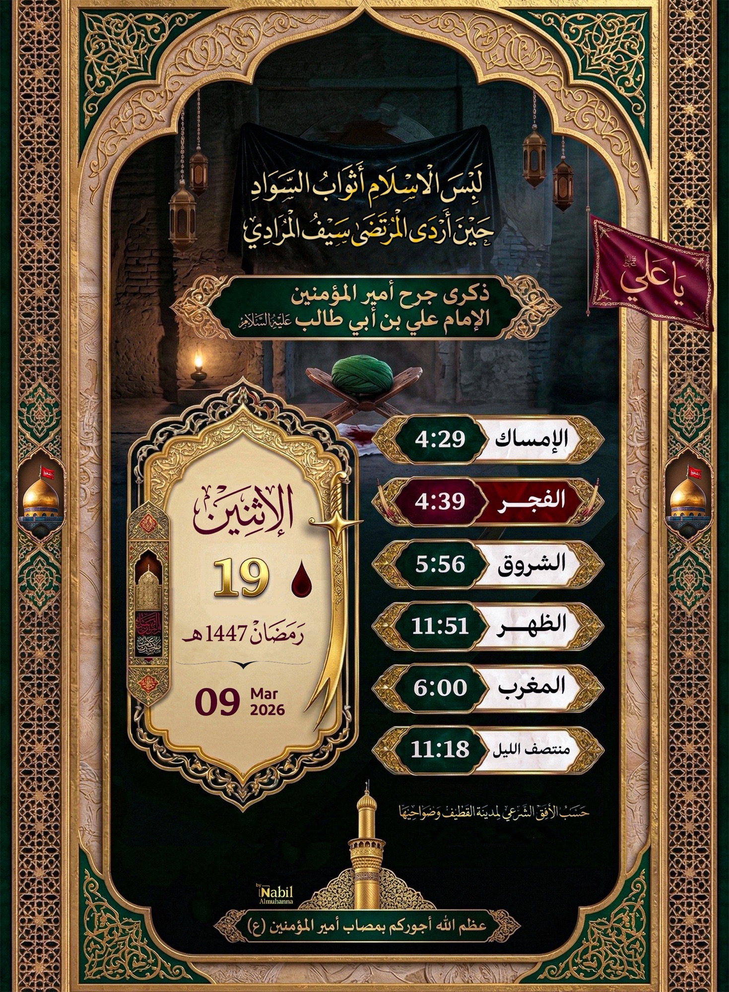 جدول مجالس ذكرى وفاة أمير المؤمنين عليه السلام