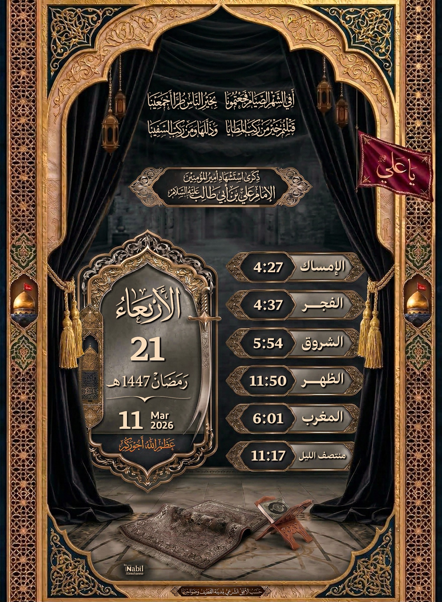 جدول مجالس ذكرى وفاة أمير المؤمنين عليه السلام
