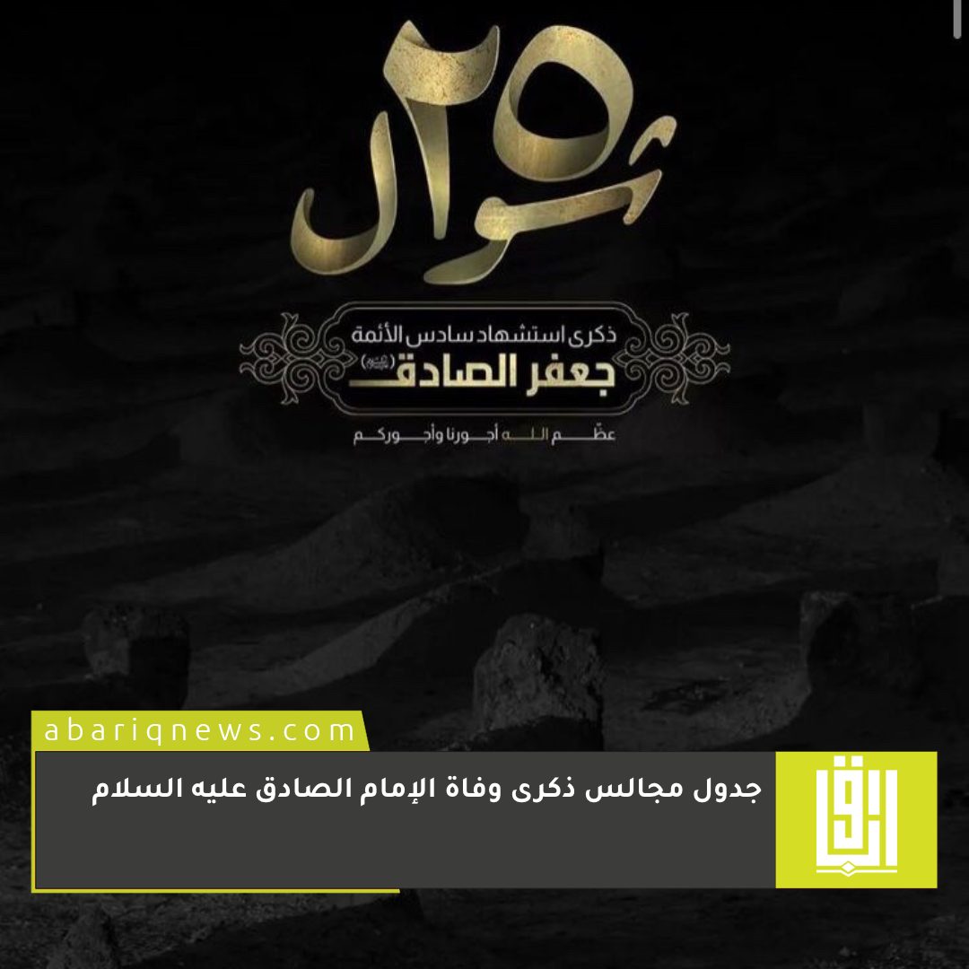 جدول مجالس ذكرى وفاة الإمام الصادق عليه السلام