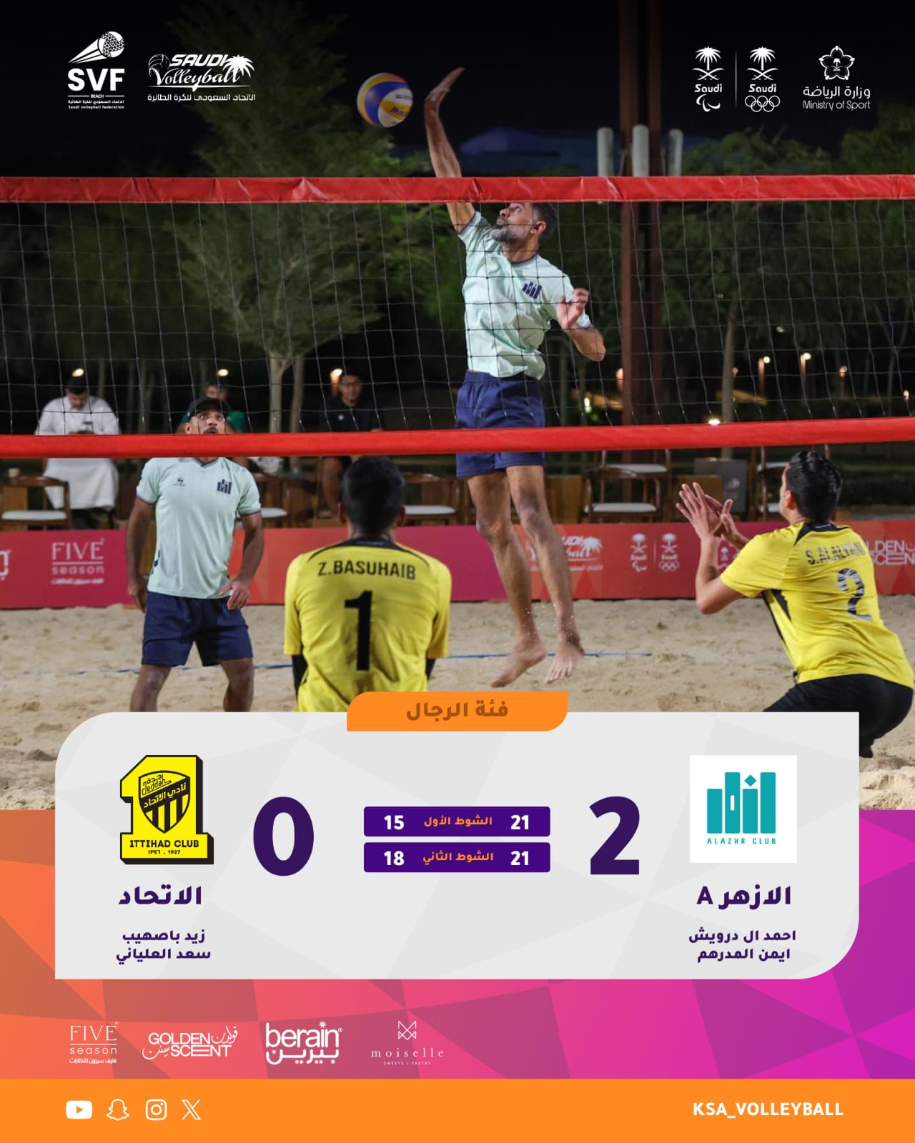 الأزهر يتألق بفوز مستحق على الاتحاد (٢-٠) في بطولة المملكة للكرة الطائرة الشاطئية