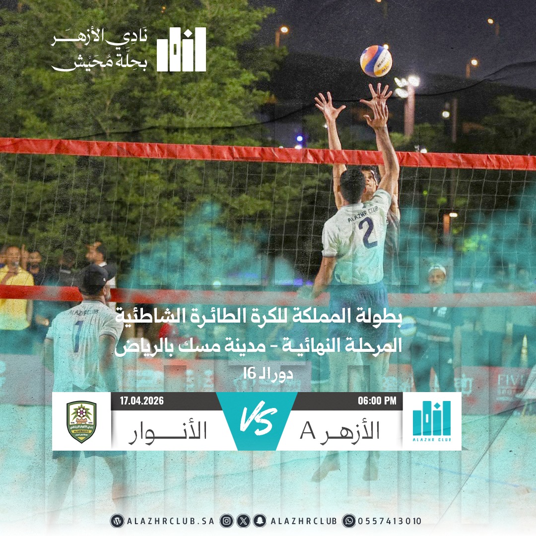واصل نادي الأزهر حضوره اللافت في بطولة المملكة للكرة الطائرة الشاطئية، بعدما نجح في حجز مقعده في دور الـ16 عن جدارة واستحقاق، مؤكدًا أنه أحد المنافسين في البطولة.