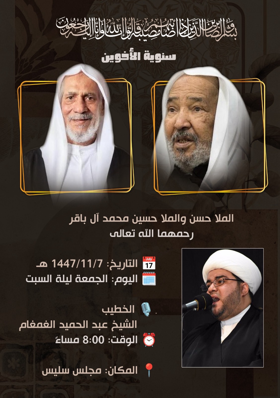 ️ إحياء الذكرى السنوية للأخوين الملا حسن والملا حسين آل باقر