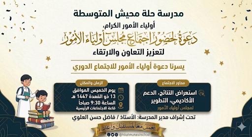 دعوة لحضور إجتماع مجلس أولياء الامور بمدرسة حلة محيش المتوسطة والبرهان الثانوية